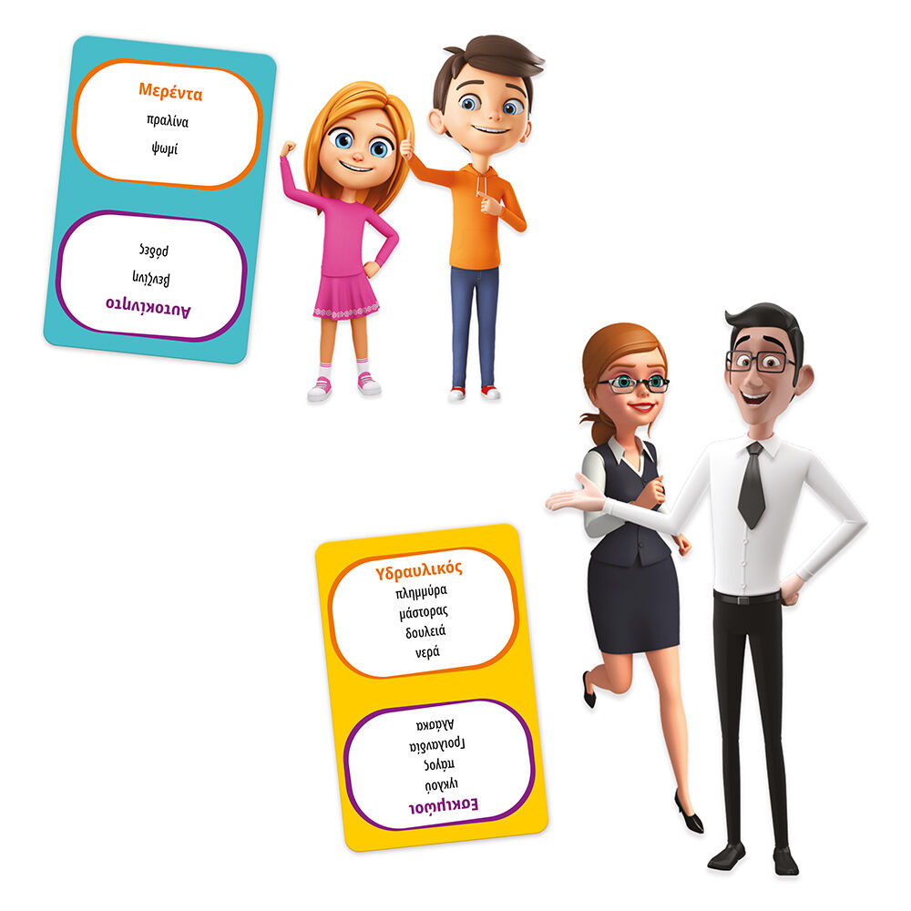 Μικροί και μεγάλοι προσπαθούν να φτάσουν στον τερματισμό μαντεύοντας όσες περισσότερες λέξεις μπορούν! Προσοχή, τα ειδικά πεδία στο ταμπλό μπορούν να ανατρέψουν το παιχνίδι! Ήρθε η ώρα να αποδείξετε ποιος είναι καλύτερος στη μεγαλύτερη οικογενειακή αναμέτρηση!