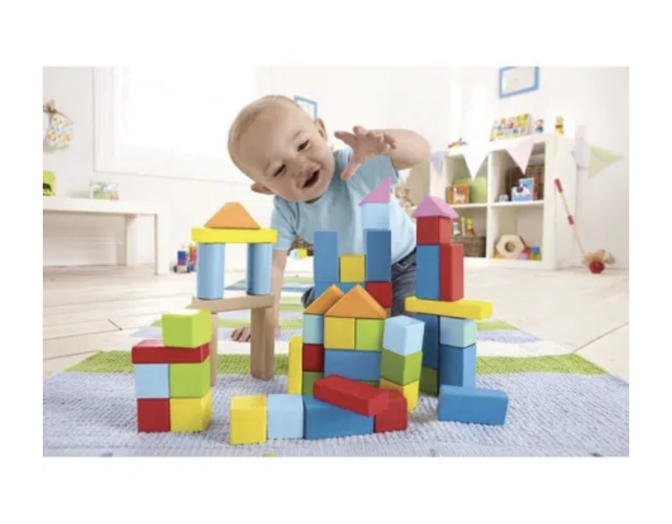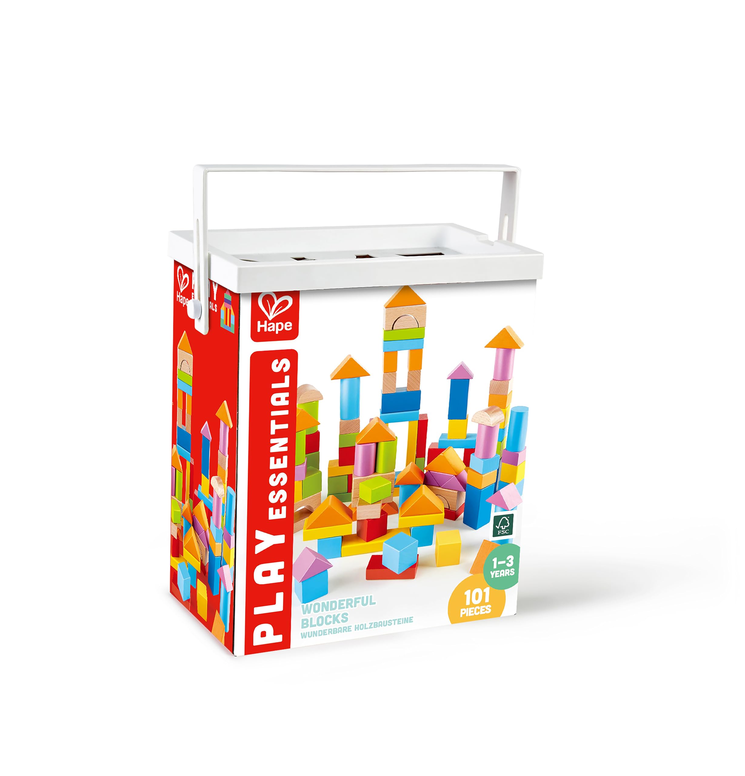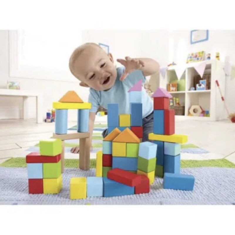 Hape Ξύλινα Τουβλάκια Beech Block (E8247). Πολύχρωμα τουβλάκια σε κουτί αποθήκευσης. 101Τεμ.
